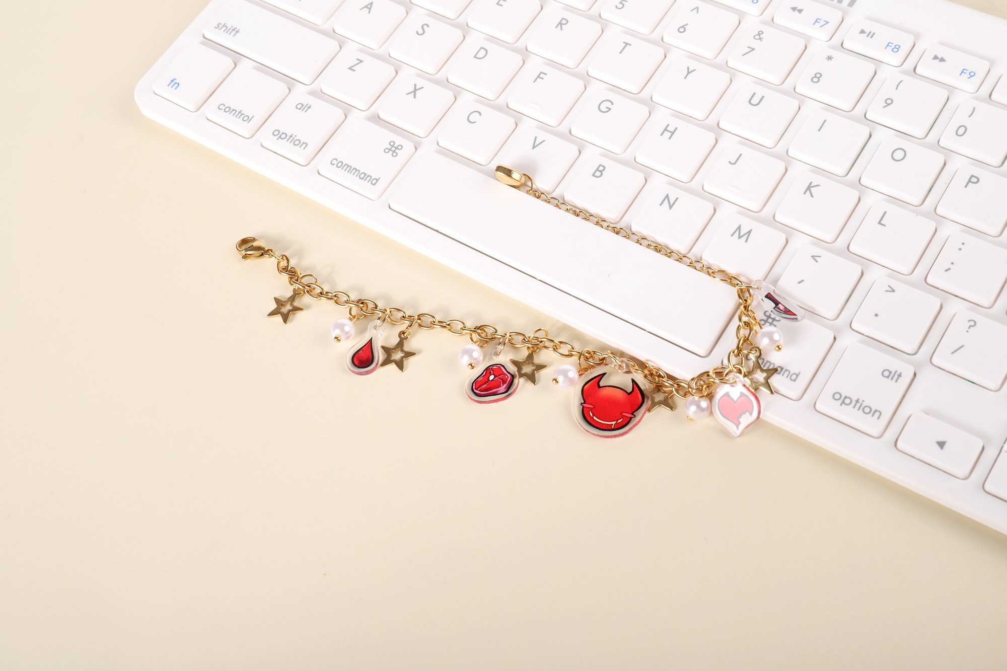 Featuring five custom acrylic charms and a faux-gold chain, these Deadly Cute bracelets will make a sharp addition to any butcher-themed ensemble.